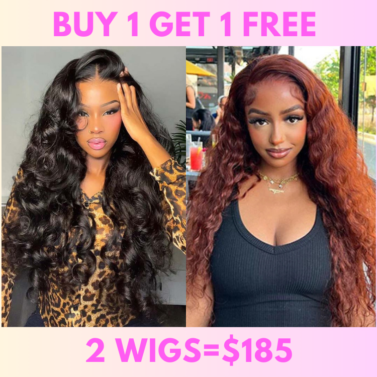 Bogo Flash Sale| Top-Selling Loose Wave Glueless 6x4 Lace Wig with Curtain Bangs + Long Water Wave Reddish Brown 7x5 Lace Wig