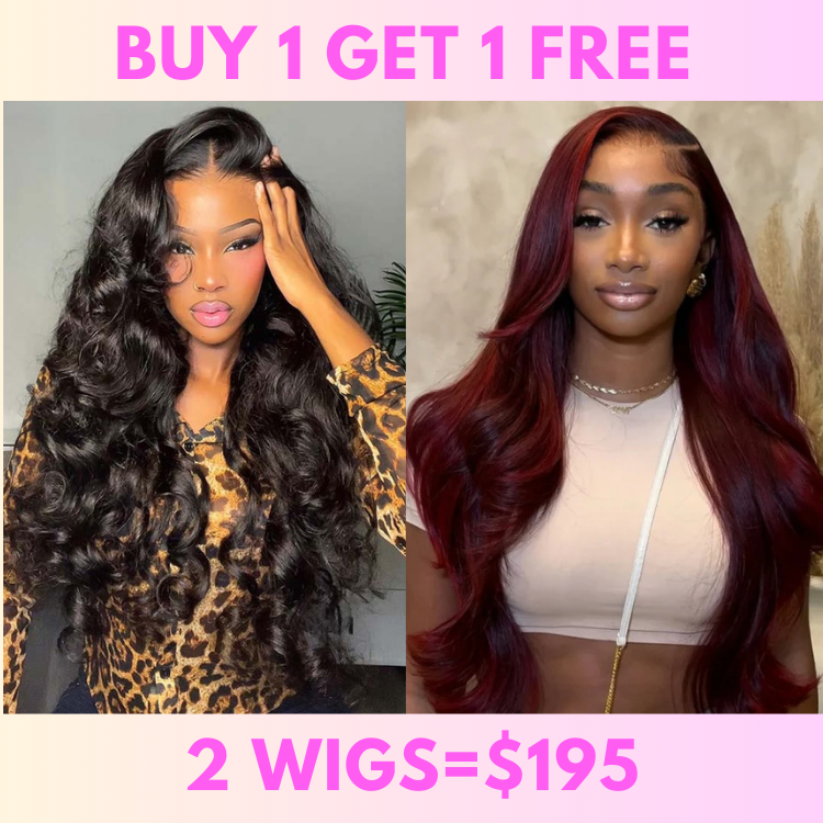 Bogo Flash Sale| Glueless 7×5 Loose Wave Lace Wigs with Curtain Bangs + Dark 99J Burgundy Glueless 13x4 Lace Frontal Wig