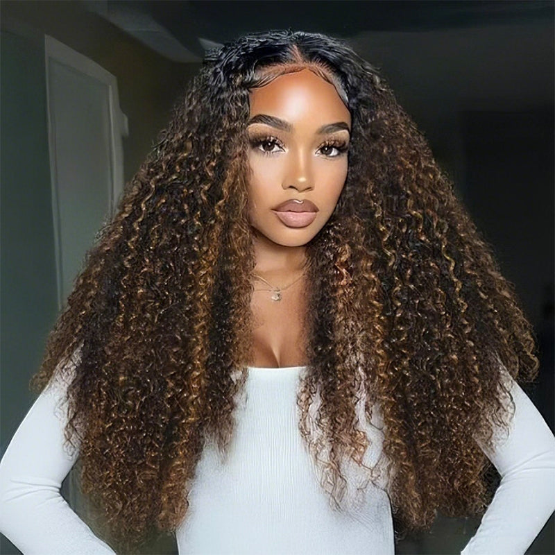 To maintain the defined Burmese curly pattern and massive 300% density volume, we recommend using a rich leave-in conditioner or curl-defining cream on wet hair. This 13x6 HD transparent lace unit provides maximum parting space and an undetectable glueless finish. Detangle gently with a wide-tooth comb from ends to roots to keep your brown highlights looking fresh and vibrant!