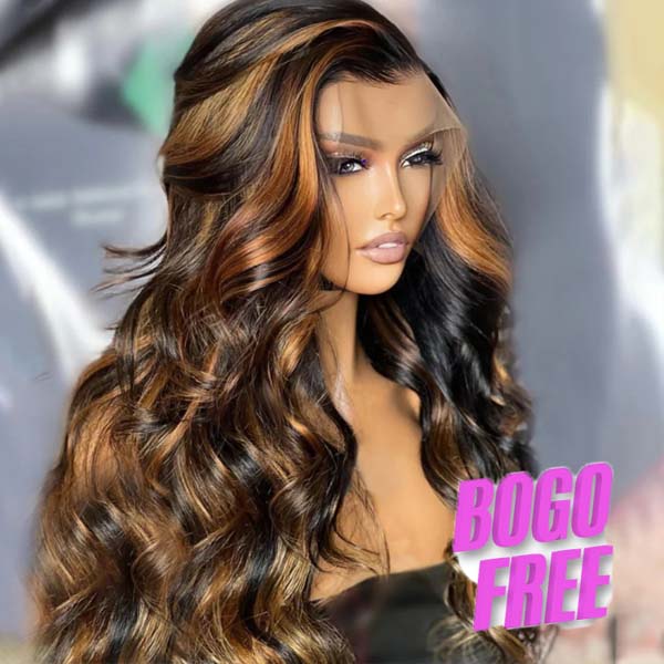 Buy 1 Get 1 Free Highlight Blonde Mix Brown Glueless Body Wave Human Hair Lace Front Wig