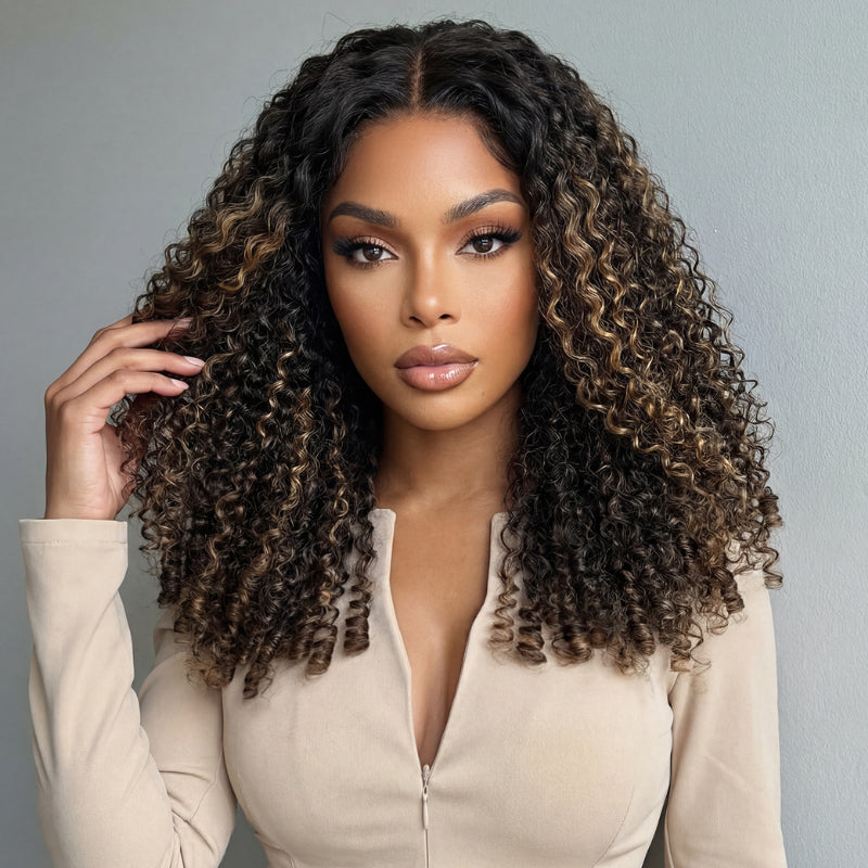 Highlight Color Honey Blonde Curly HD Transparent Full Lace Front Wig With Brown Roots- Amanda Hair