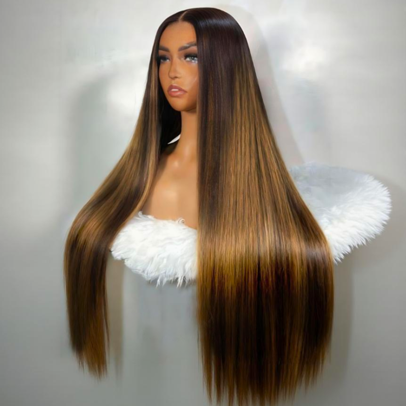 300% Density Balayage Highlights Straight 13x4 Full Lace Front HD Transparent Lace Glueless Wig Amanda Hair