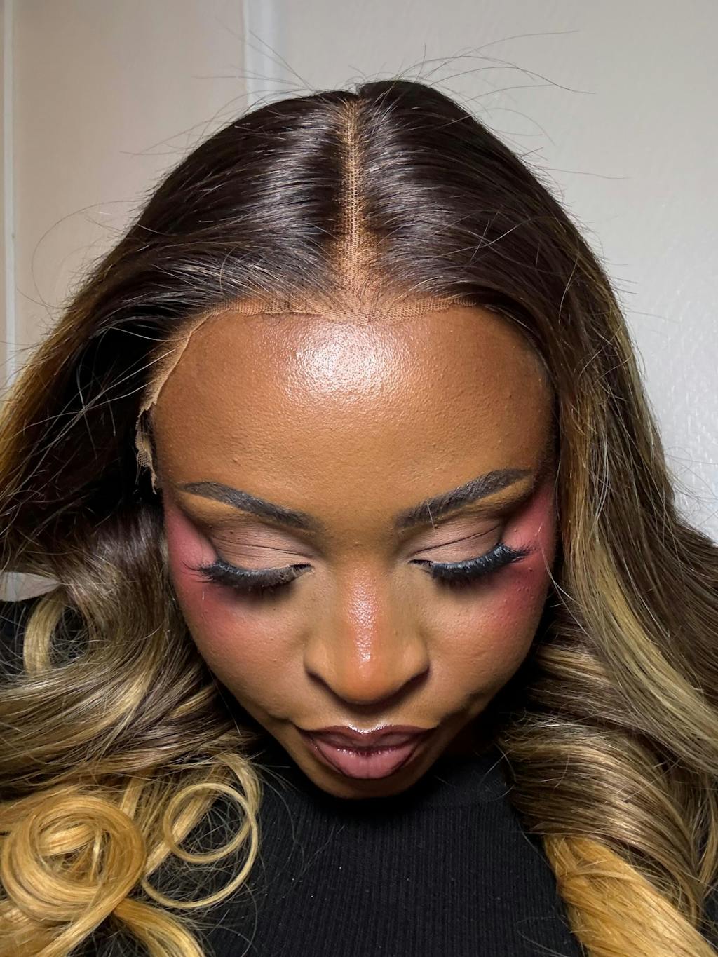 Amanda Highlight Honey Blonde Mix Brown Loose Wave Glueless 13x4 HD Transparent Pre Everything Lace Front Human Wigs