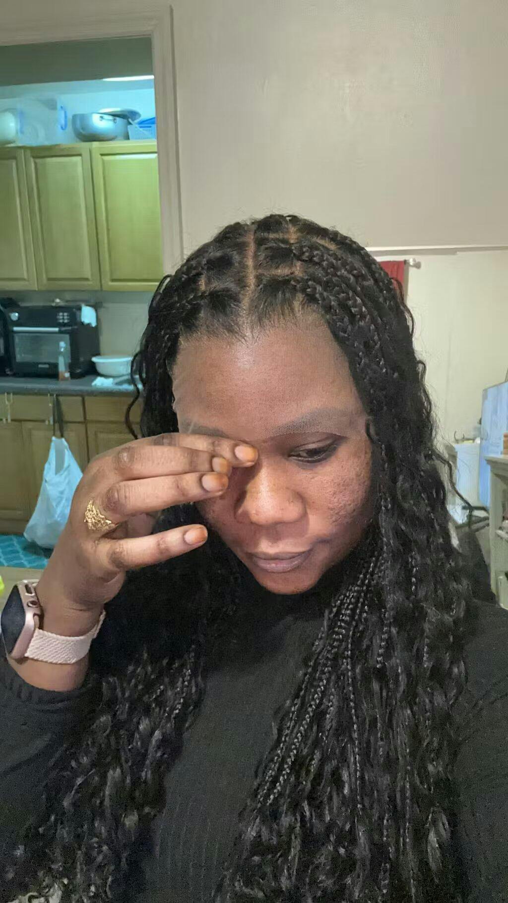 Peluca de cabello humano con rizos sueltos y exquisitos sin pegamento con raya trenzada, cabello humano 100 % negro natural, peluca con frente de encaje transparente y cierre - Amanda Hair