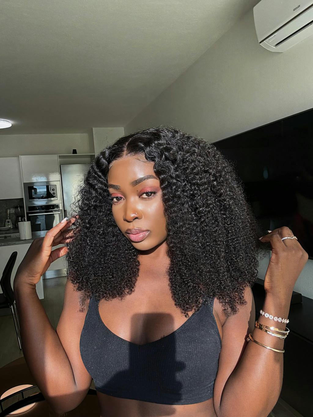 Pelucas de cabello humano rizado, esponjoso, grueso y con rebote atrevido con una densidad del 300 % y cierre de encaje sin pegamento - Amanda Hair