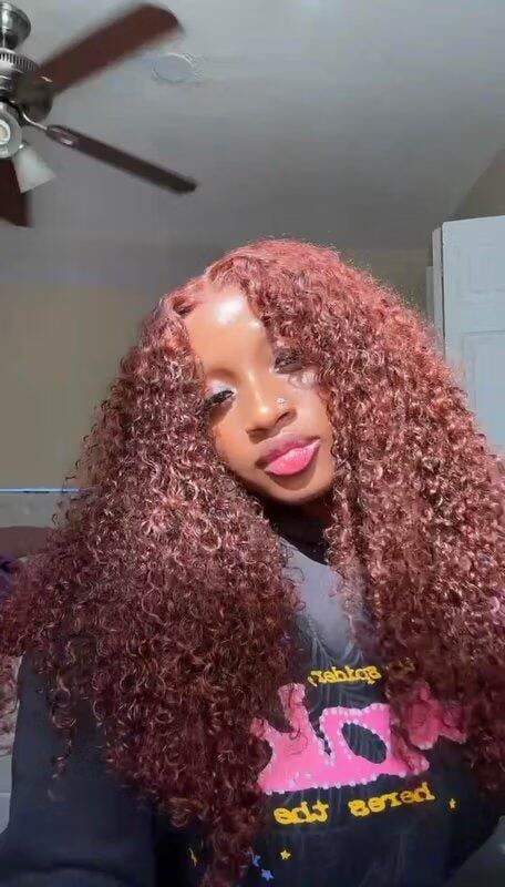 Afro Kinky Curly Reddish Brown Glueless 13x6 Lace Front Drawstring Put On And Go Human Hair Wig - Amanda hair