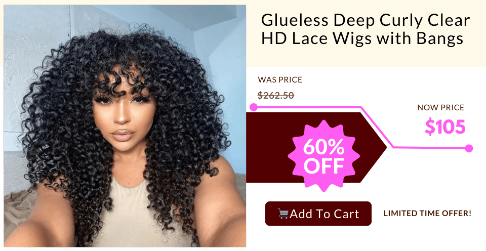 20‘’=$139 | Glueless Bohemian Curly HD Transparent Full Lace Frontal Boho Kinky Curly Human Hair Wig Flash Sale