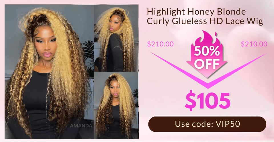 Highlight Color Honey Blonde Curly HD Transparent Full Lace Front Wig With Brown Roots- Amanda Hair